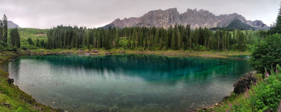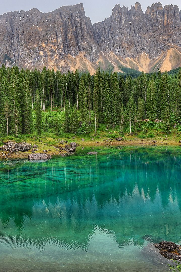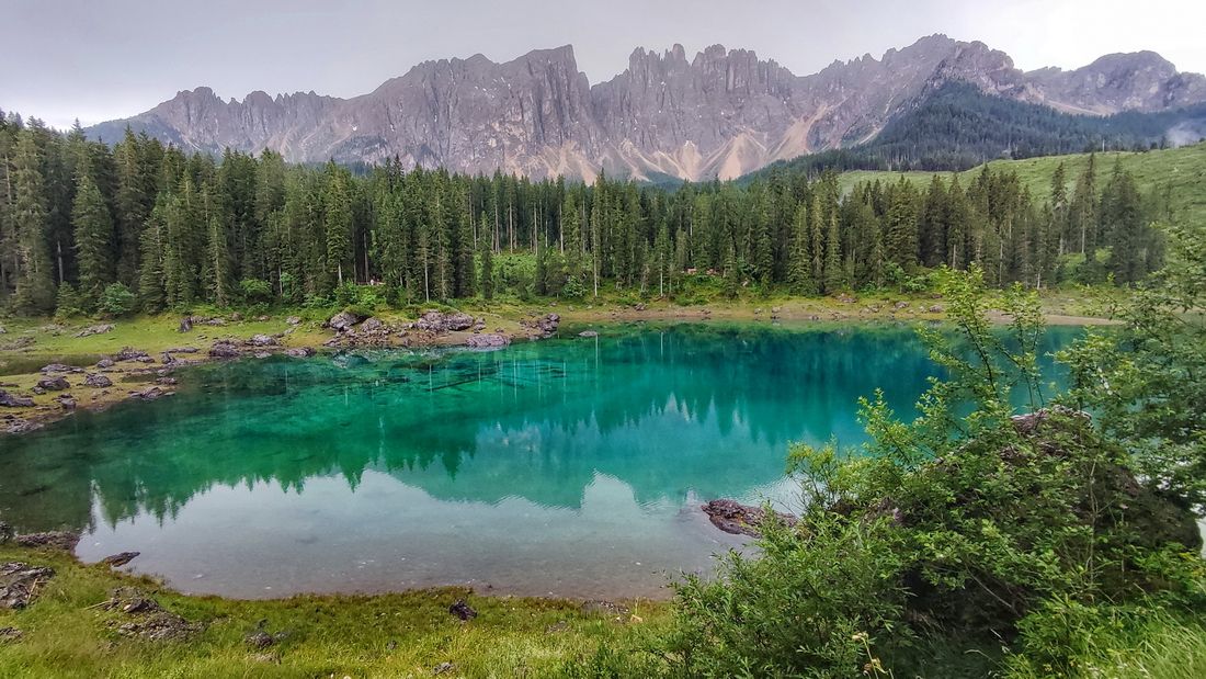 Volviendo al Bolzano un "must do" que se nos escapaba, el Lago di Carezza es uno de los rincones más bellos y fotogénicos de los Dolomitas. Situado a 1.520 metros de altitud, en la región del Alto Adigio (Sudtirol), este pequeño lago alpino está rodeado por un denso bosque de abetos que enmarca las aguas como si fuera un cuadro natural. Lo que lo hace tan especial es el color intenso y cambiante de sus aguas, según la hora del día y la luz, el lago refleja tonalidades que van del verde esmeralda al azul profundo, siempre con un brillo cristalino.