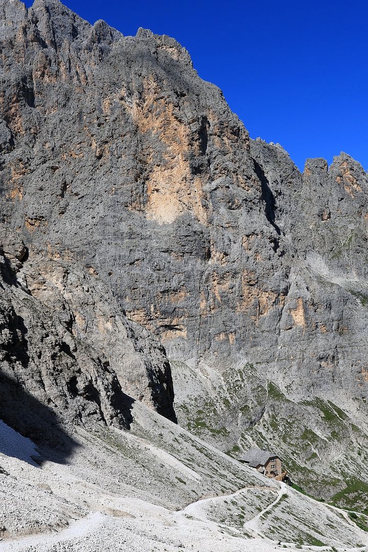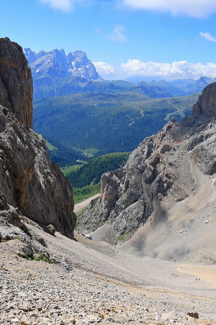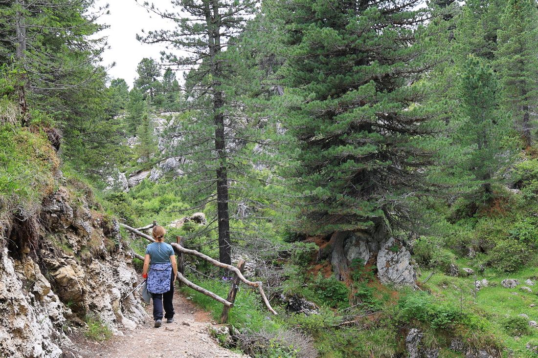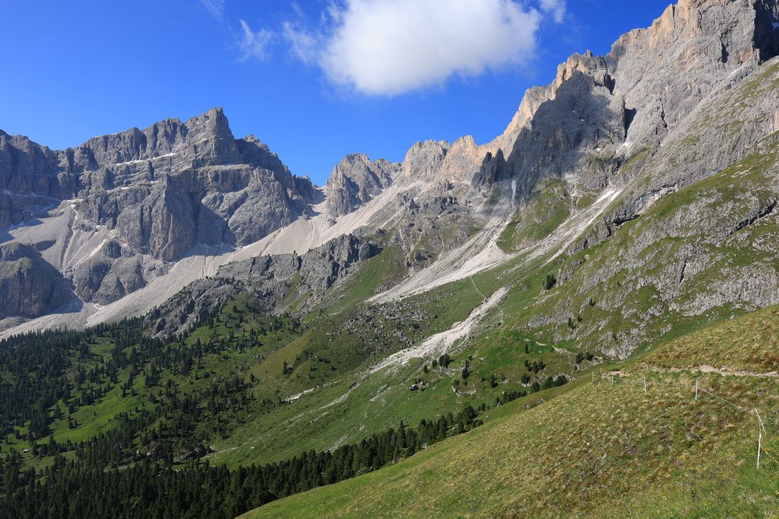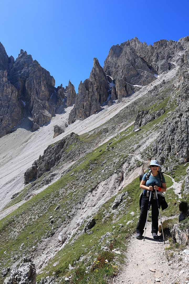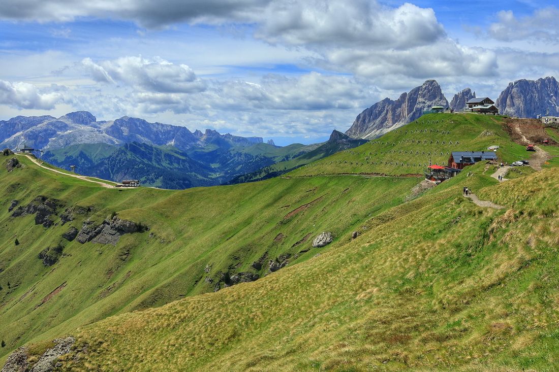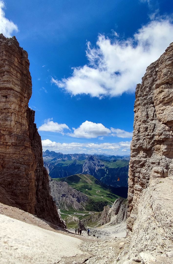 Tras remontar un repecho estamos en una especie de arista por la que transita el Vièl dal Pan (Camino del Pan), un antiguo sendero entre valles, al principio muy concurrido con varios chiringuitos, todo es zona de esquí. Después ya un poco más solitario, como pasa habitualmente en los Dolomitas donde las zonas accesible están bastante masificadas pero según te alejas vuelve la paz.
