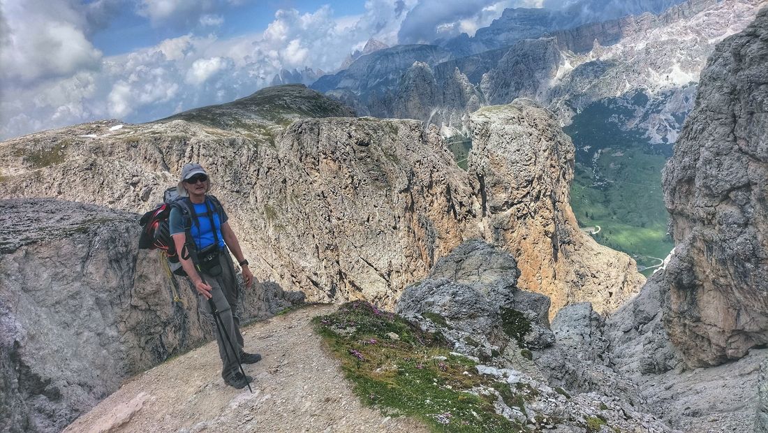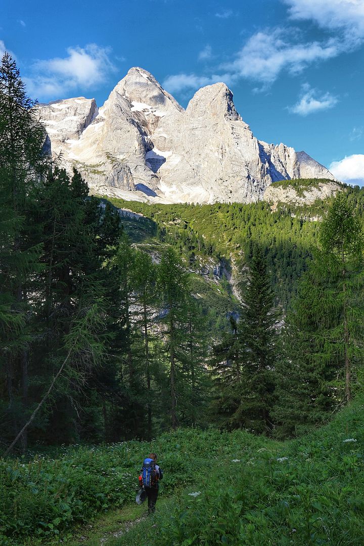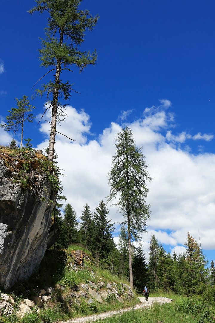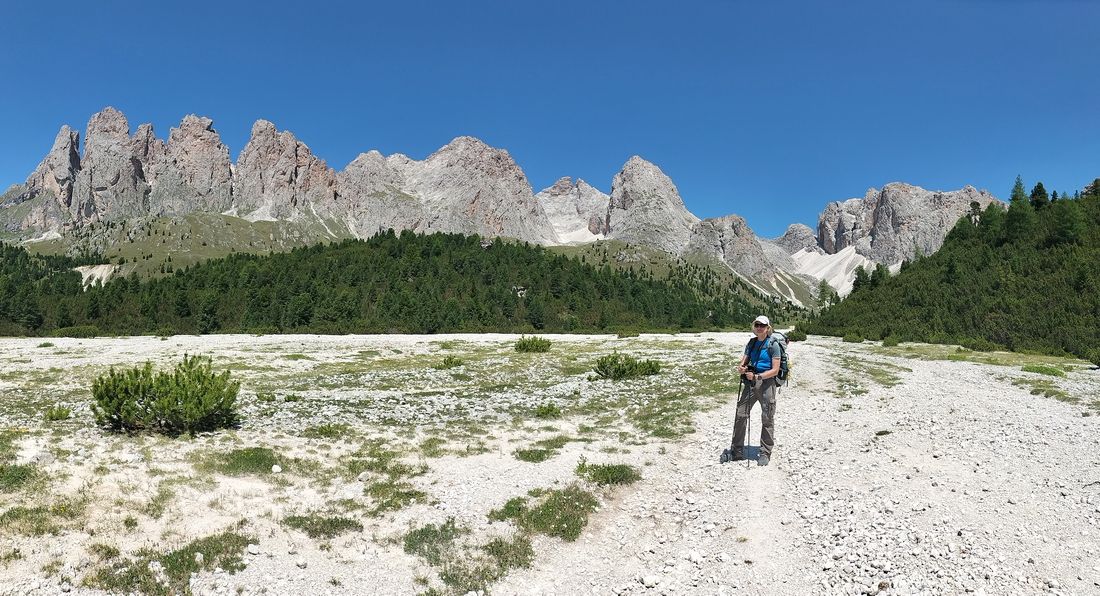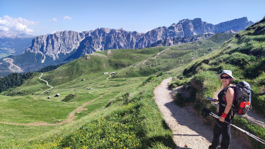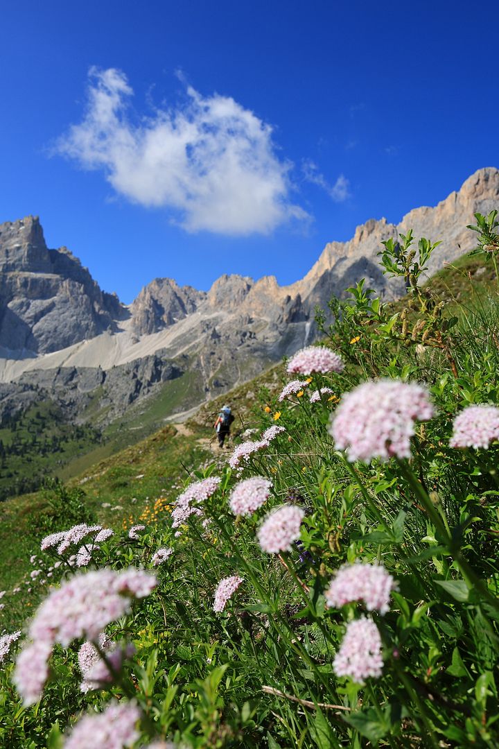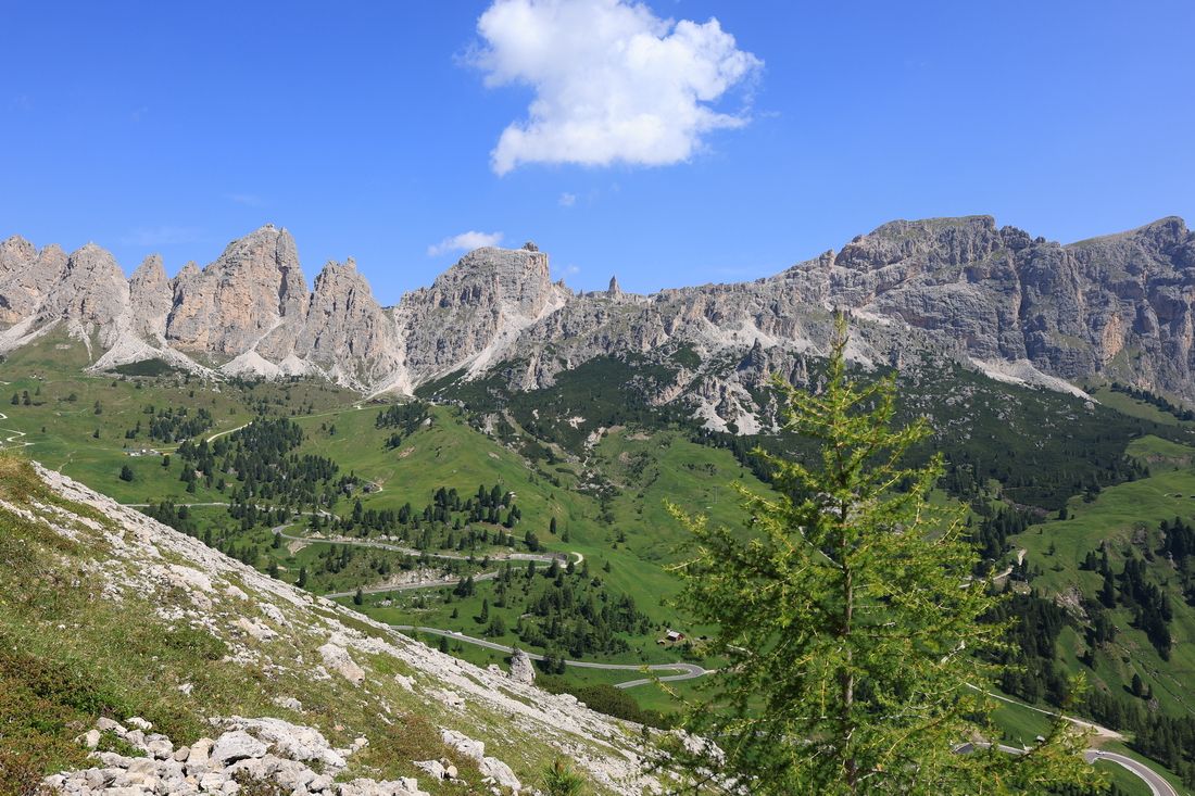 Tras remontar un repecho estamos en una especie de arista por la que transita el Vièl dal Pan (Camino del Pan), un antiguo sendero entre valles, al principio muy concurrido con varios chiringuitos, todo es zona de esquí. Después ya un poco más solitario, como pasa habitualmente en los Dolomitas donde las zonas accesible están bastante masificadas pero según te alejas vuelve la paz.