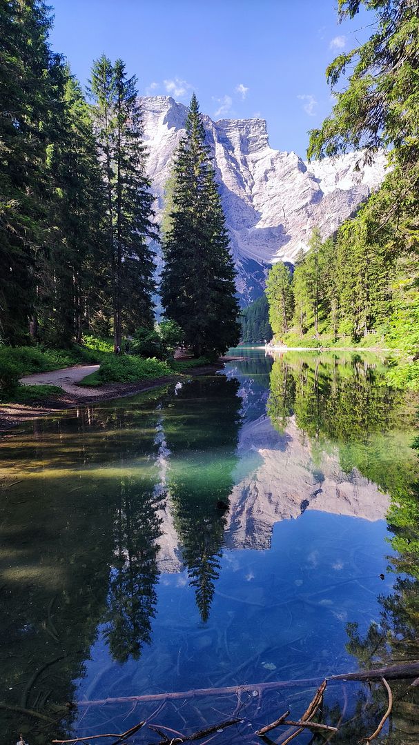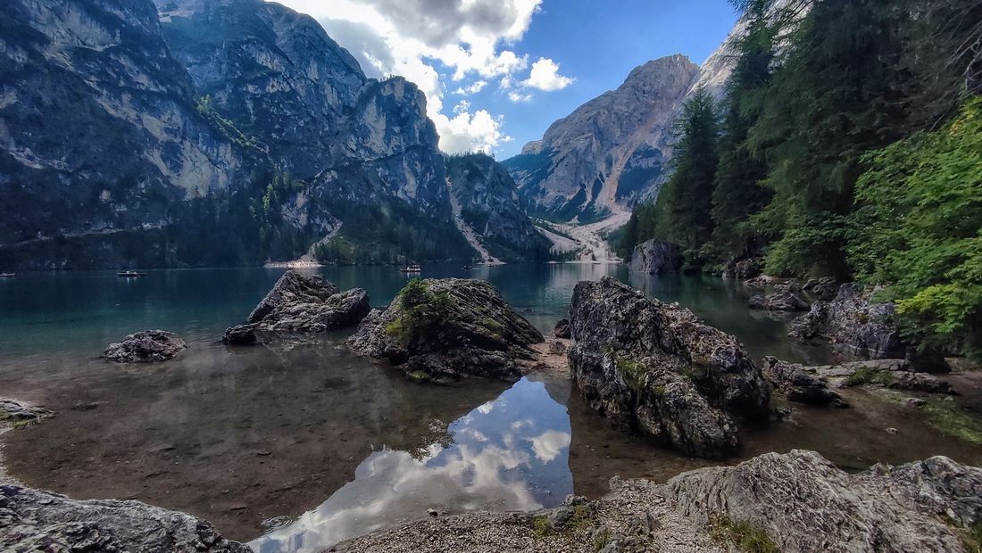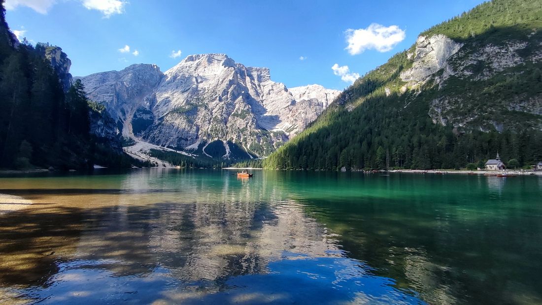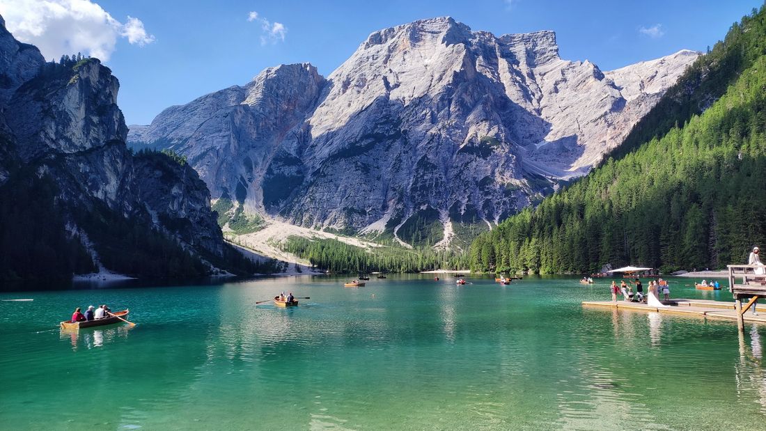 Ahora toca el Lago di Dobbiaco, rodeado de montañas y bosques imponentes menos frecuentado que otros lagos pero no menos bello.