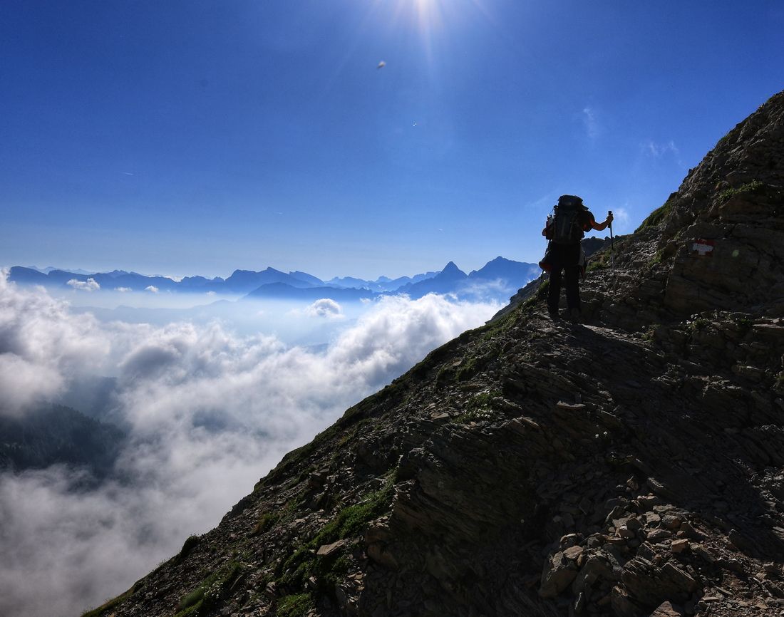 Remontando un primer repecho de unos 100 m se llega al paso Bronsoi desde donde hay unas espectaculares vistas adornadas con mar de nubes a estas horas.