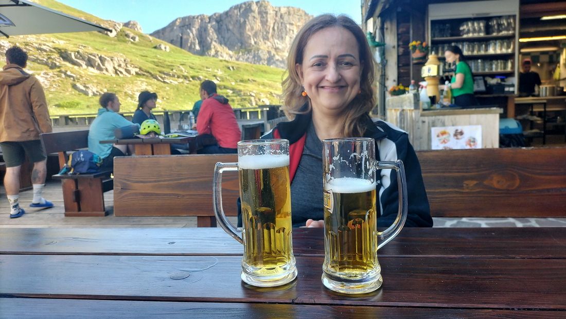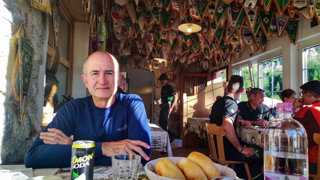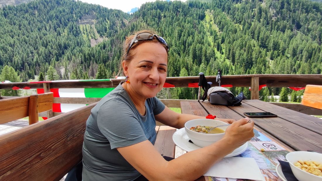 Paradita intermedia en el refugio Baita Cianci donde dimos cuenta de un magnifico plato de menestra y los Canederli, especie de albóndiga en caldo, el plato estrella de la zona.