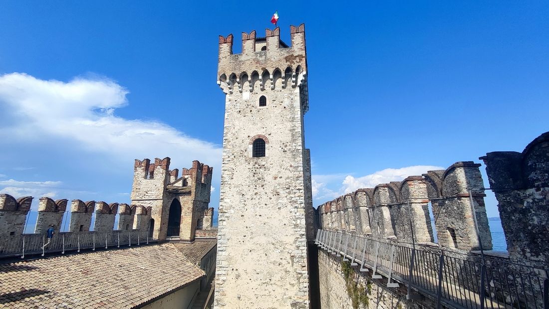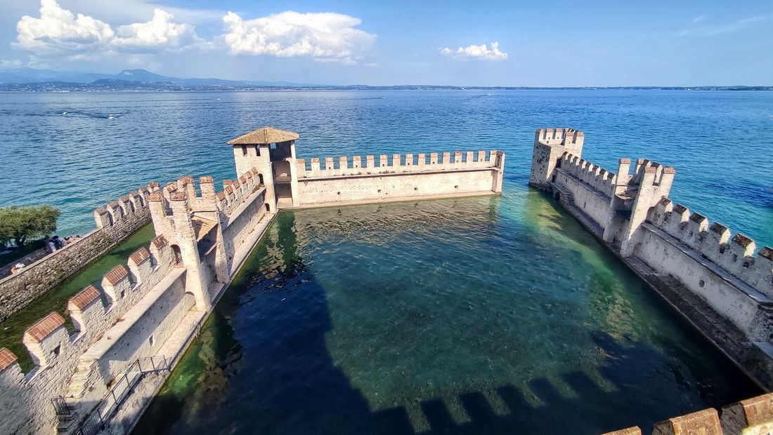 Y para terminar Sirmione, La perla del Lago di Garda, es una península estrecha que se adentra varios kilómetros en el lago, rodeada de aguas turquesas y panorámicas abiertas. Es uno de los lugares más icónicos y románticos de todo el Garda. Impresiona la entrada al casco histórico: un puente levadizo que atraviesa el foso y conduce directamente al Castello Scaligero, una fortaleza medieval que parece flotar sobre el agua. Sus murallas y torres reflejadas en el lago lo convierten en uno de los castillos más fotogénicos de Italia.