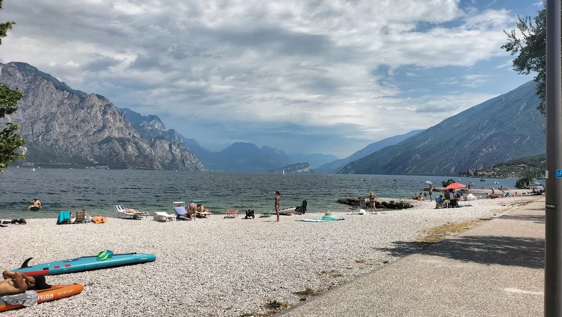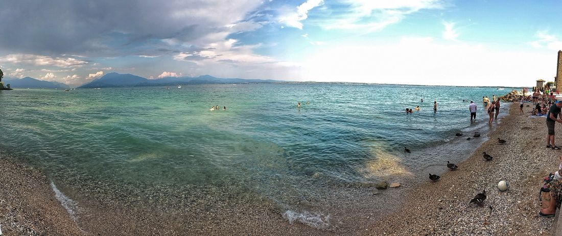 Y final en una de las playas de Sirmione, aguas transparentes y las montañas de fondo.