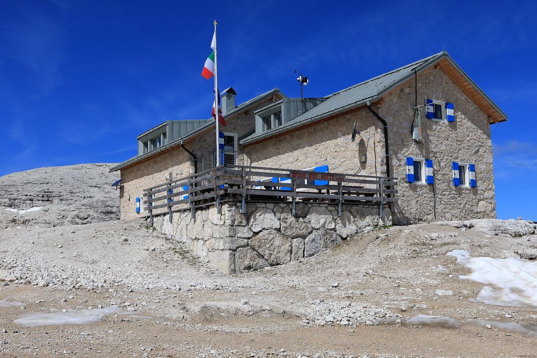 Pasamos sin parar por el refugio Boè (Bambergerhütte, 2871 m), con una subidita previa al Antersass, un promontorio sobre la llanuar, el refugio suele ser un hito de la AV2 si quieres prolongar la etapa anterior.