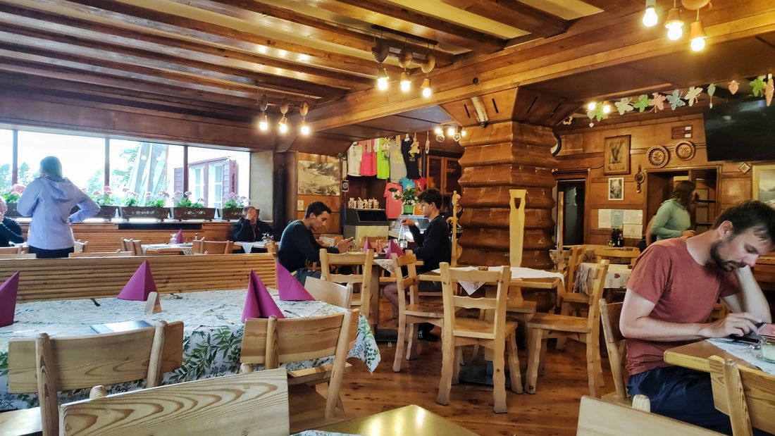 Ya en el refugio, todo un lujo de comedor y del cuadro de fondo ni hablemos.