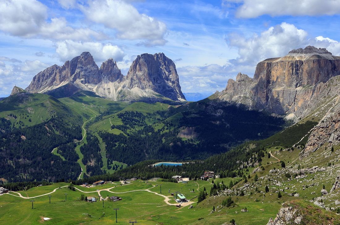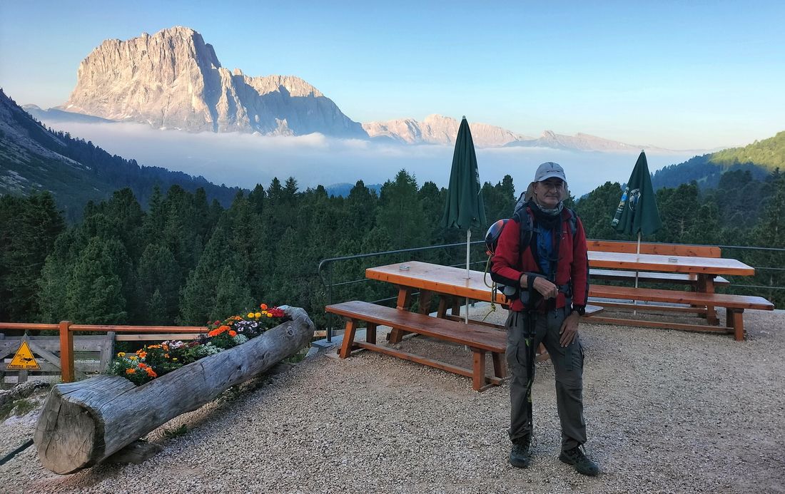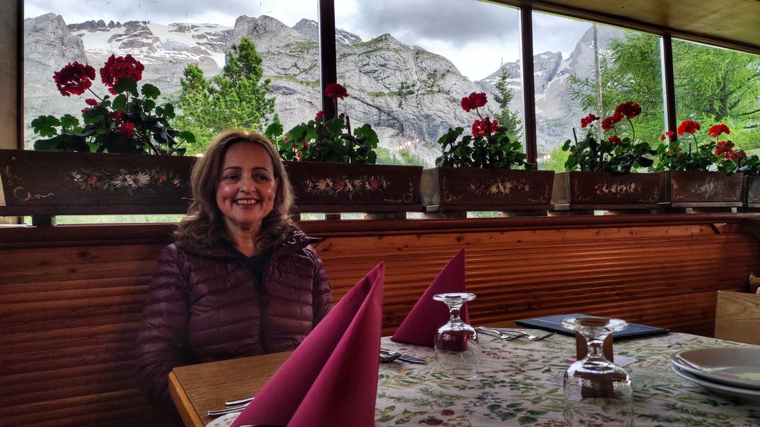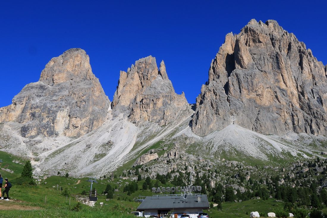 De frente una visita que haríamos en días venideros, el macizo de Sassolungo, muy popular también entre senderistas avanzados.