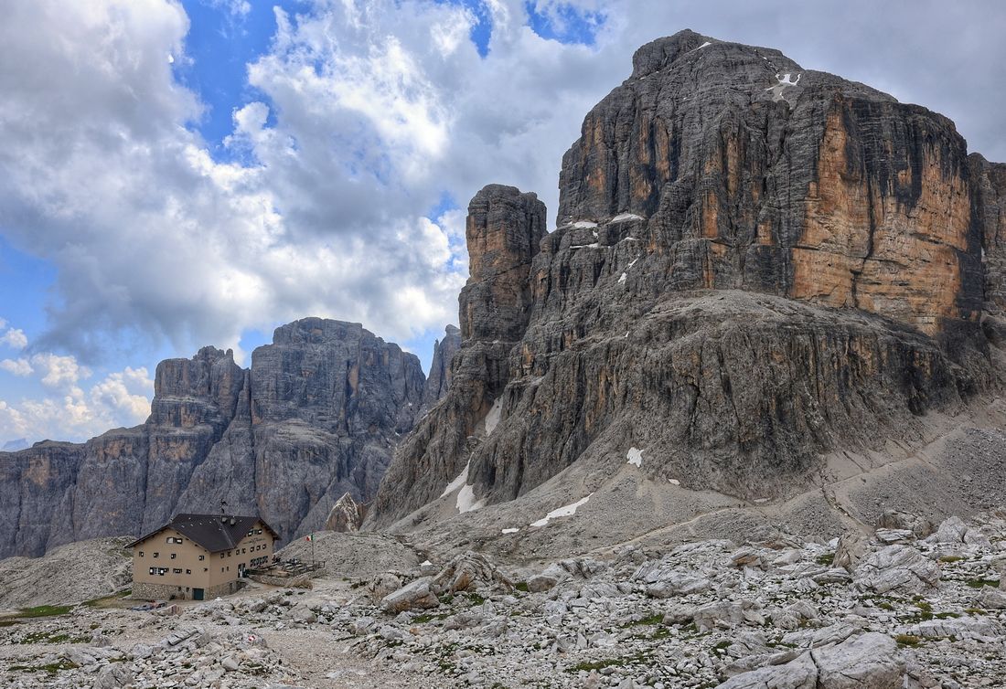 Durante la Primera Guerra Mundial, los Alpini lucharon duramente en el frente de los Dolomitas contra las tropas austrohúngaras. En esa época, la necesidad de refugios seguros y bien ubicados en altura era vital tanto para la logística militar como para la supervivencia en invierno.
