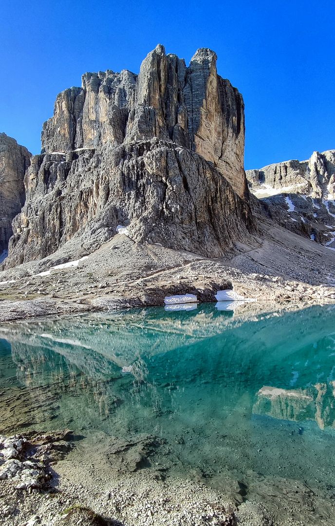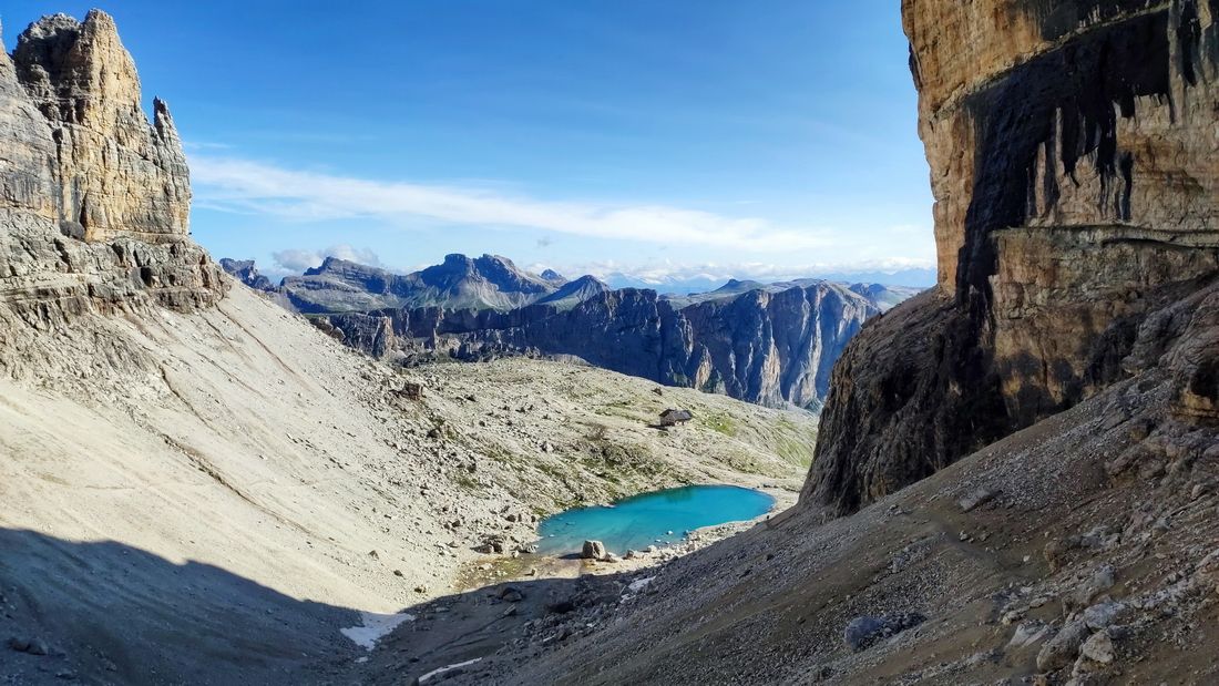 No hay palabras para describir la ubicación del refugio Pisciadù 2.585m, junto a lago de aguas azules turquesa, rodeado de un circo de paredones verticales y con la impresionante mole del piz Pisciadu al frente, la zona esta declarada como monumento natural.