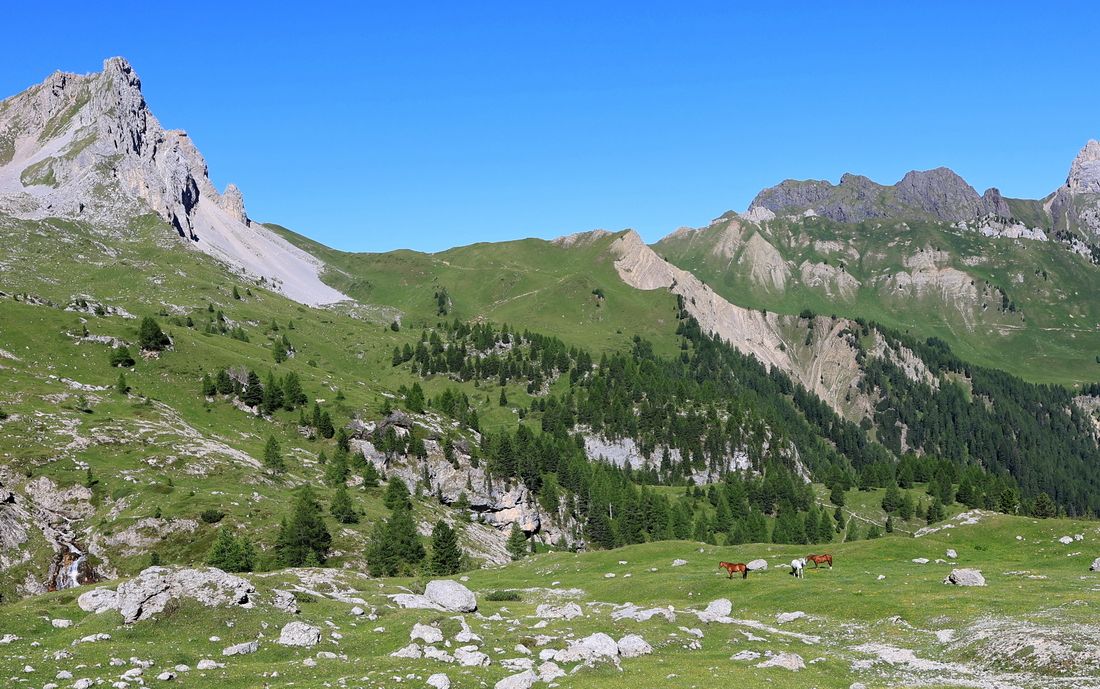 Y aquí iniciamos la aventura, primer teleférico de la mañana a la 9:00 nos sitúa a 2.448 m en nuestro punto de partida: la estación de esquí de Plose, un poco tarde pues nos espera una jornada algo larga unos 16 kms con un acumulado de unos 1.200m al no disponer del refugio de Plose y tener que llegar directamente al Refugio Génova cuyo horario de cena imponía un ritmo un tanto elevado.
