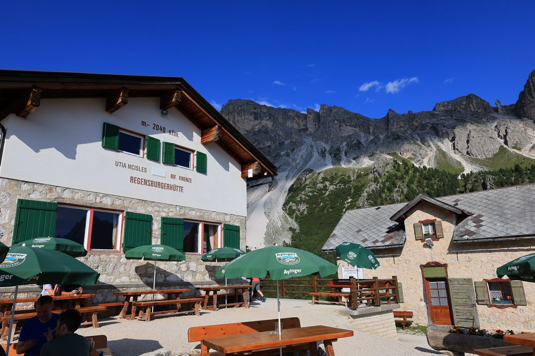 Buena comida y gran ambiente, especialmente de día, ya que es lugar de paso de varias rutas muy populares, incluyendo la que baja de la arista de Seceda.