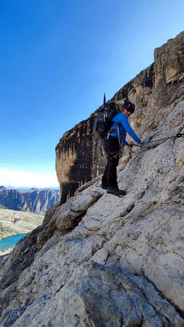 Un poco de cultura geográfica: Los Dolomitas son una cadena montañosa situada en el noreste de Italia, entre las regiones del Tirol del Sur, Trentino y Véneto. Su nombre proviene del geólogo Déodat de Dolomieu, quien estudió la peculiar roca caliza que les da su característico color claro y sus dramáticas formas. Esta cordillera forma parte de los Alpes meridionales y fue declarada Patrimonio Mundial por la UNESCO en 2009 por su extraordinario valor paisajístico y geológico. Existen innumerables senderos y vías ferratas de todos los niveles, aquí se inventaron en la primera guerra mundial.