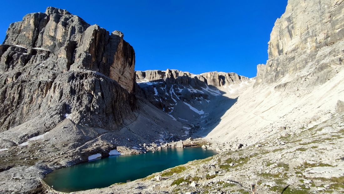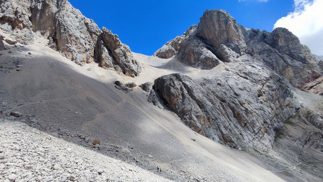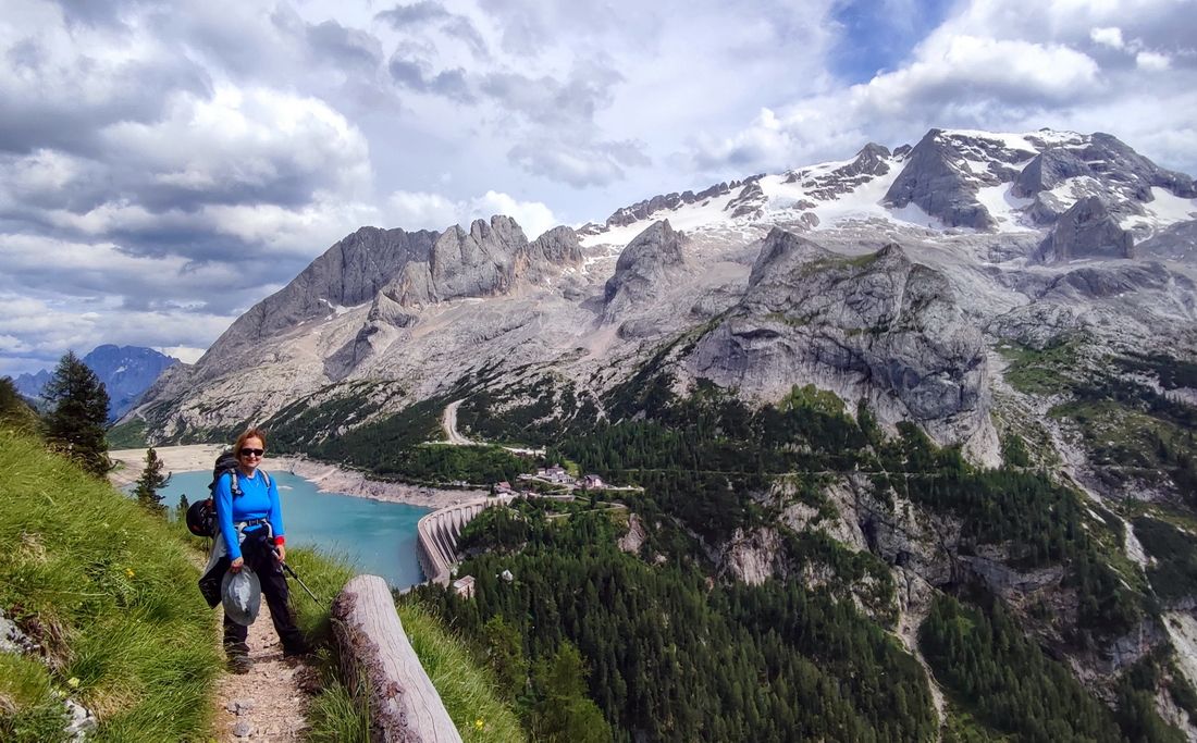 Encaramos la quinta jornada que nos lleva desde el refugio Castiglioní al refugio Contrin con unos 500 m de bajada, una subida de unos 550 m y unos 11,5 kms de recorrido. Esta etapa rodea la marmolada por el lado Oeste y es una alternativa muy utilizada de la AV2, quizás hoy día más que la otra que la rodea por el Este, sobre todo tras la avalancha del verano de 2.022 en la que se desprendió parte del glaciar perdiendo la vida 11 personas que transitaban por la zona, los días anteriores se habían registrado temperaturas de hasta 10ºC en la cima de la Marmolada, algo absolutamente poco habitual en julio.