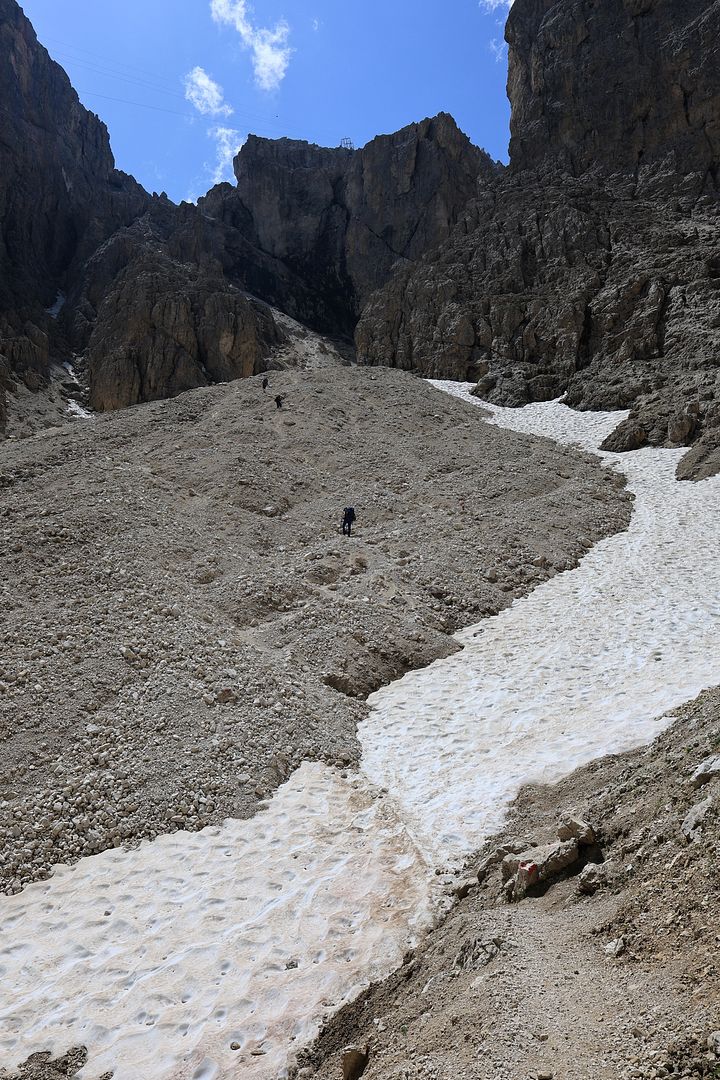 Algunos neveros ya muy mermados por la parte superior del grupo de Sella, no hubo que usar los crampones.